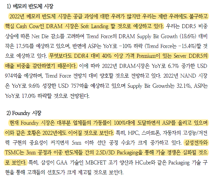 1. 기저 부담 : 코로나 시기의 출하량 성장률 IT 세트 수요(판매량)은 낙관적으로 보기만은 어렵다. 코로나 2년 동안의 높은 기저 때문이다. 대부분의 제품군에서 감소 동향이 명확하다. 스마트폰, TV, 태블릿의 역성장은 이미 21년 3분기부터 시작됐다. 노트북과 가전도 22년 상반기부터 Peak-out 동향이 뚜렷하다 현재, 주요 세트들의 2022년 감소율 전망치는 10% 내외다. 다운사이드가 확대될 가능성을 염두에 둬야 한다. 코로나 2년간 IT 소비가 급증했던 만큼 대형가전(백색, TV)들의 교체 주기도 길어질 것이다. 22년에 감소폭이 크지 않다면, 23년에도 역성장이 지속될 수 있다. 2. 스마트폰 부품 수요: 중국과 삼성에서는 턴어라운드? 일부 스마트폰 밸류체인에서는 저점 ..